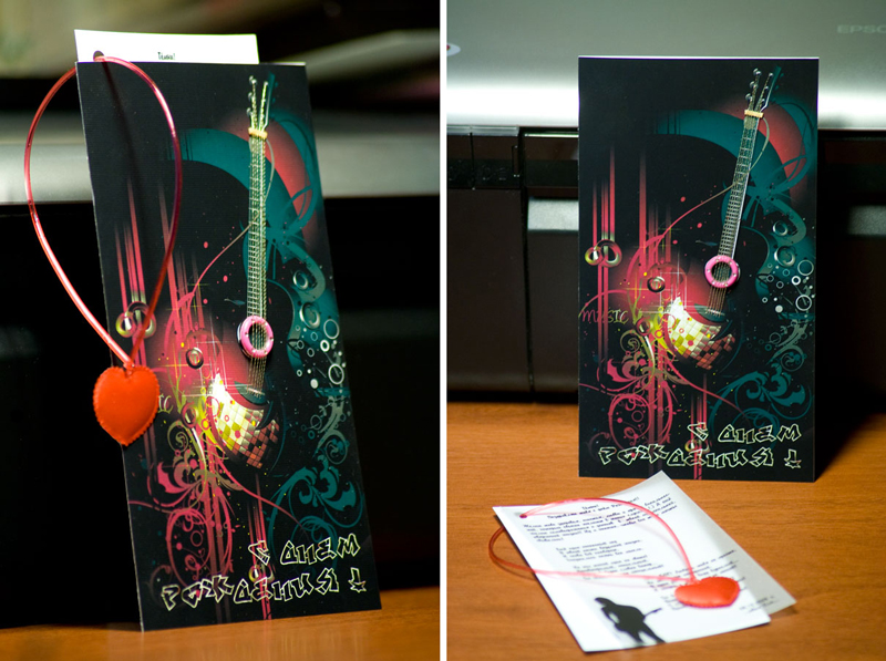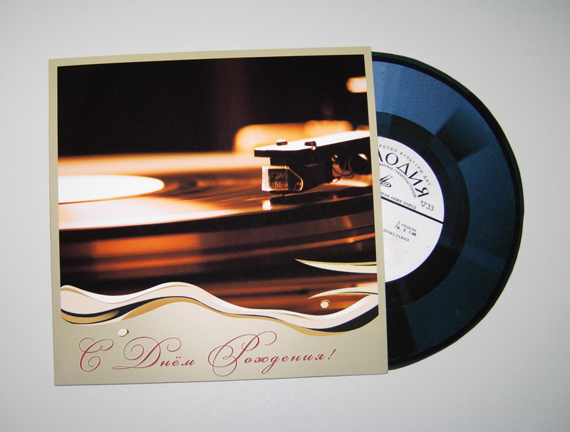 Открытка с ладошку — вынимающаяся «пластинка» для коллеги-меломана.